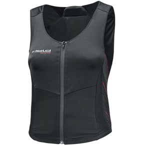 Anatomisch geformter, flexibler Rückenschutz in mehrlagiger Sandwichkonstruktion, passt sich durch Körperwärme optimal der Wirbelsäule an.